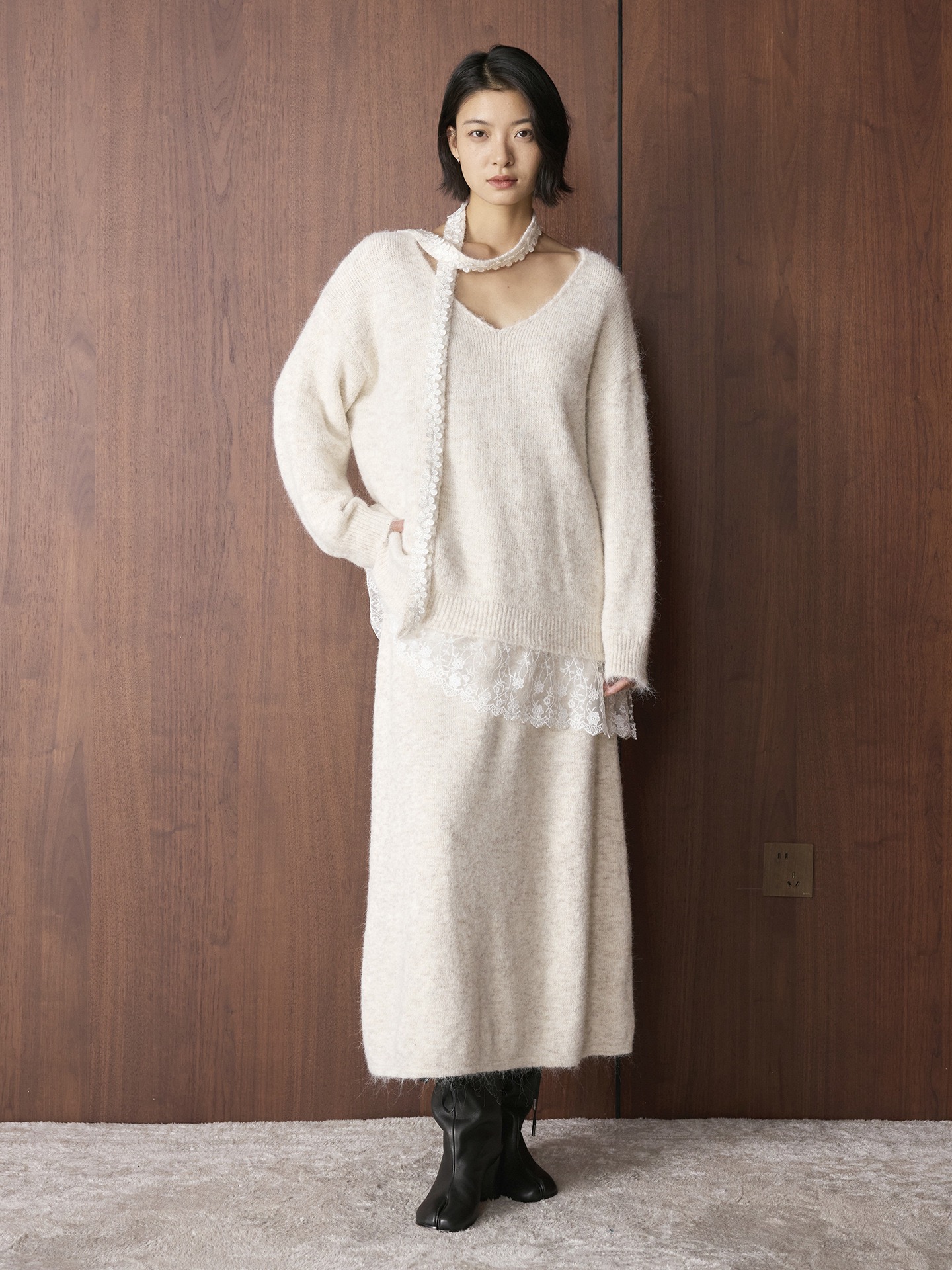 蕾絲花邊+蕾絲細圍巾相互照映