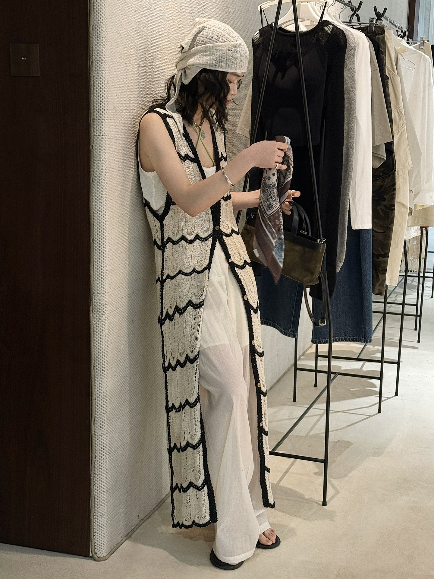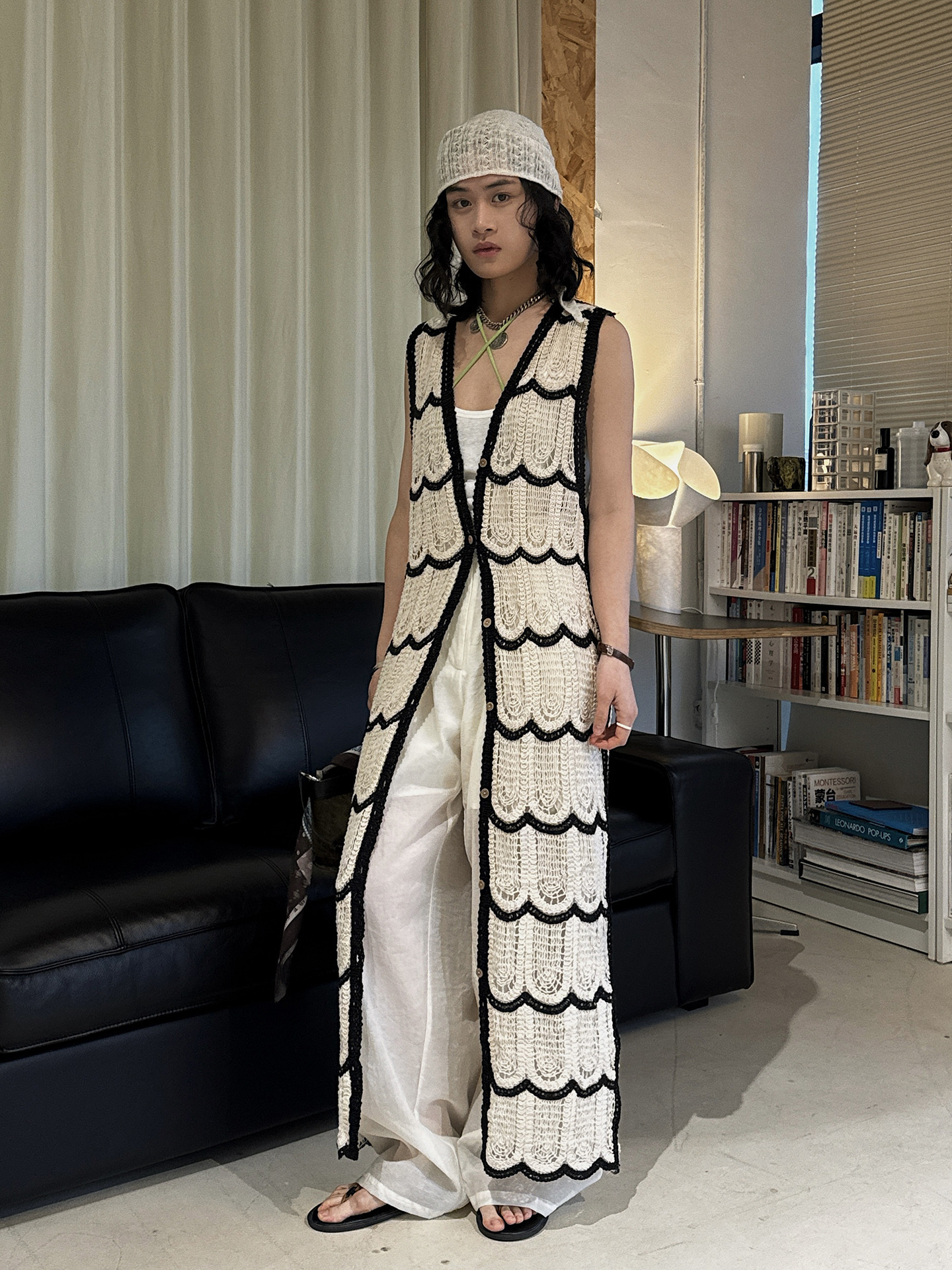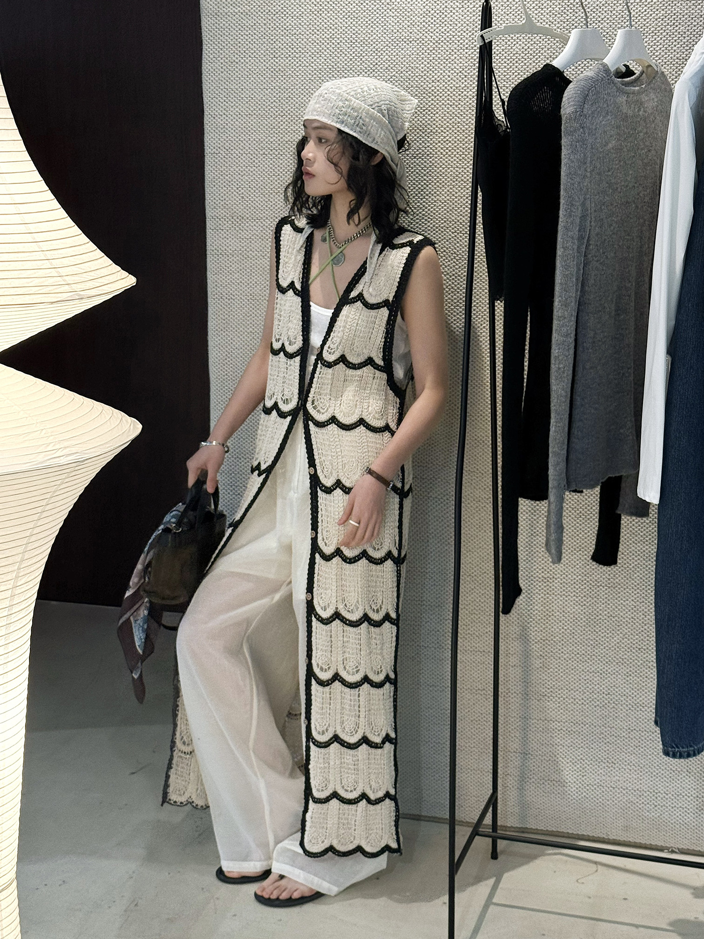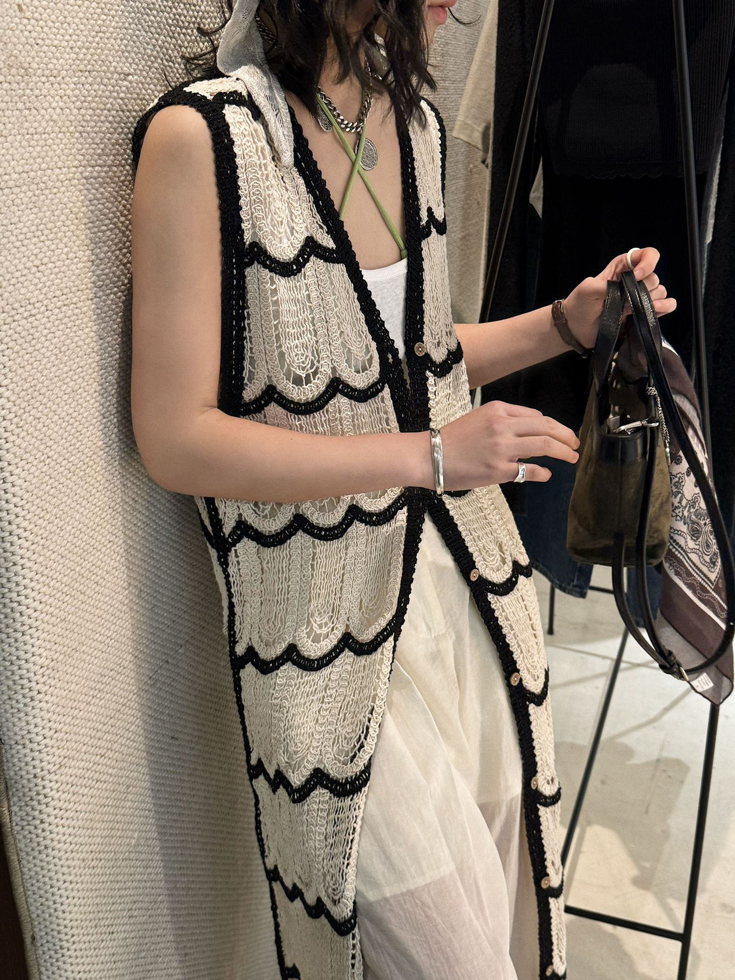 波浪鉤針長針織度假感上衣