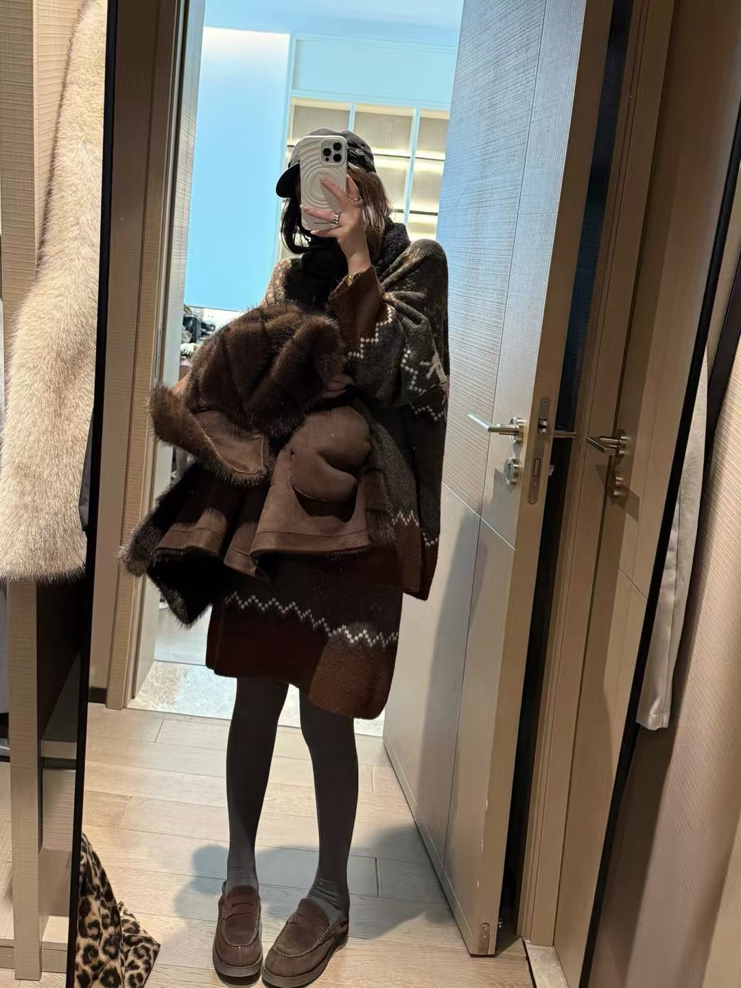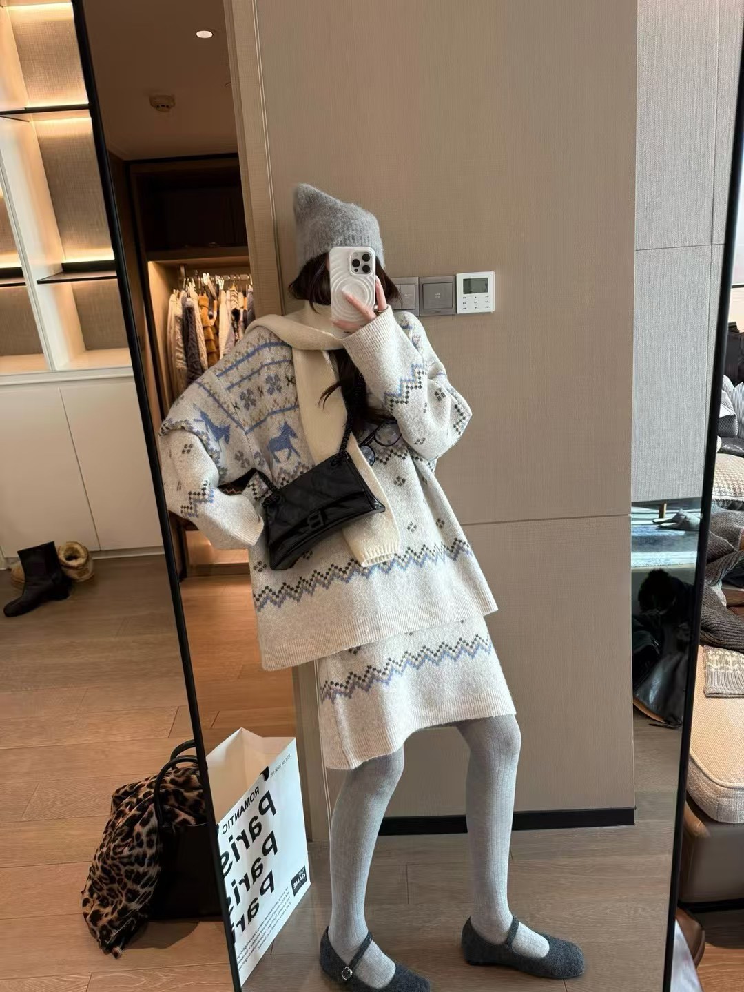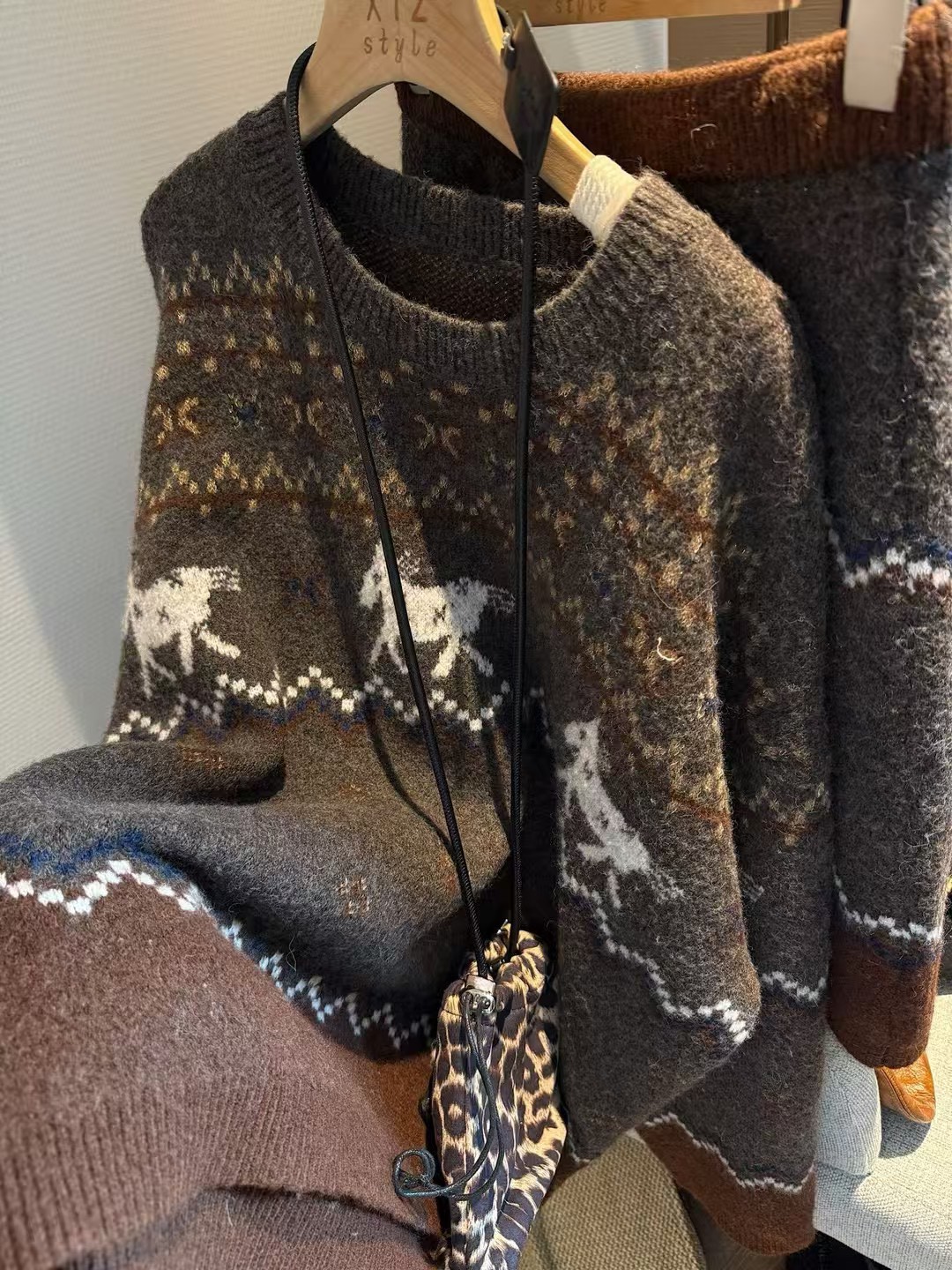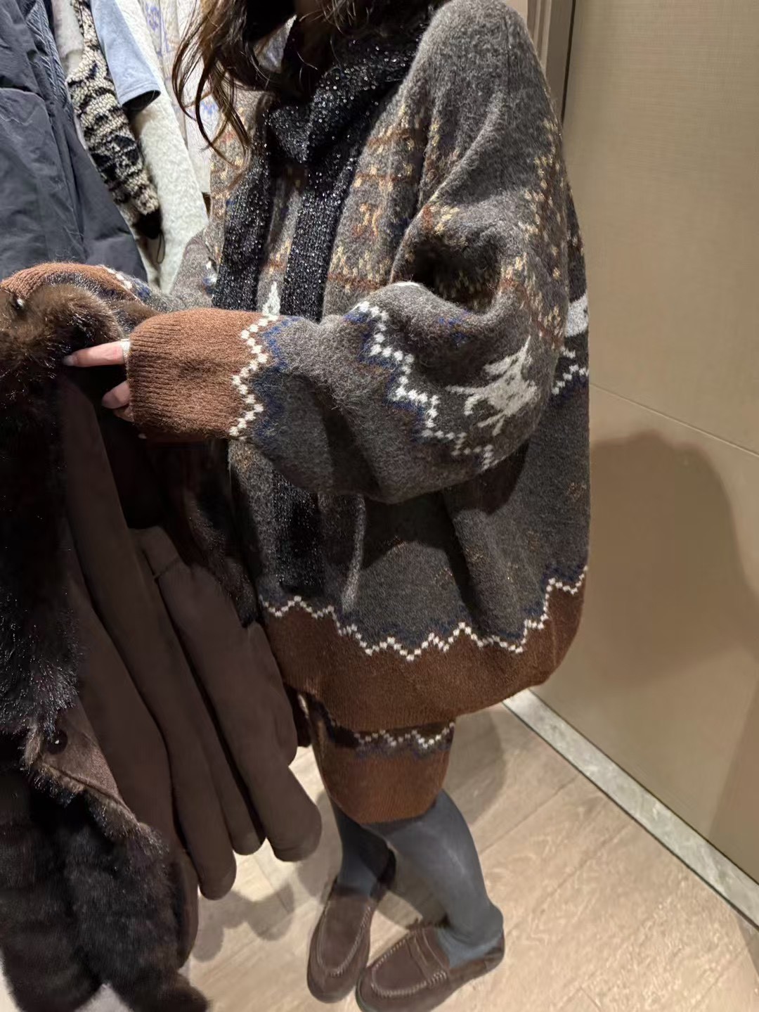 駱駝毛費爾島毛衣短裙套裝