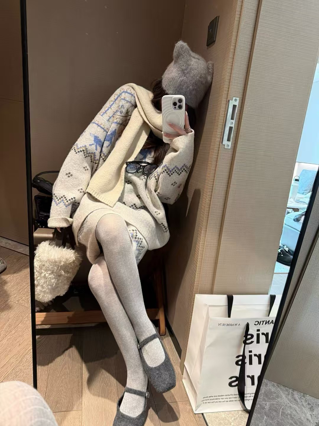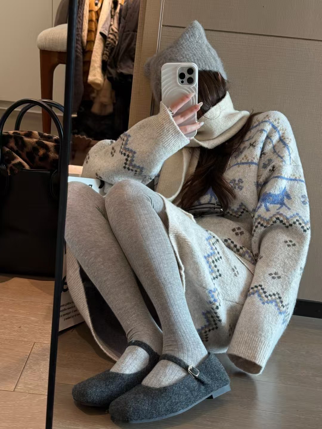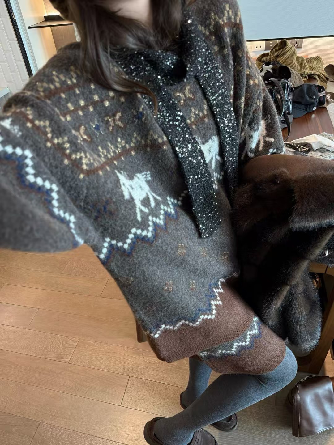 駱駝毛費爾島毛衣短裙套裝