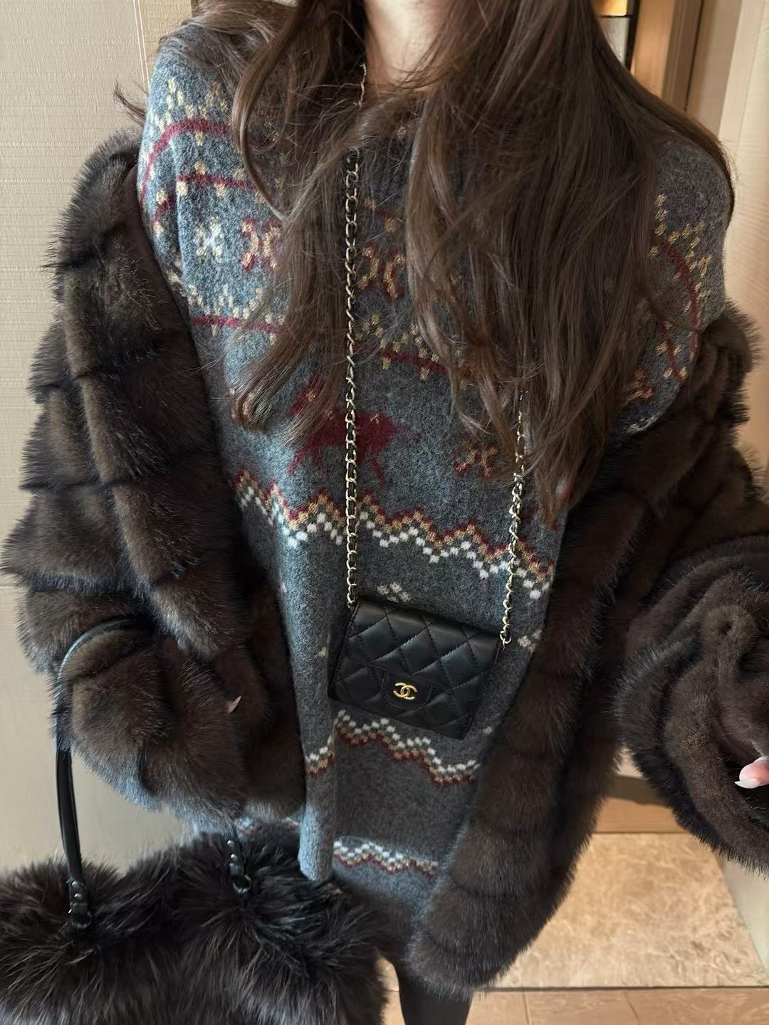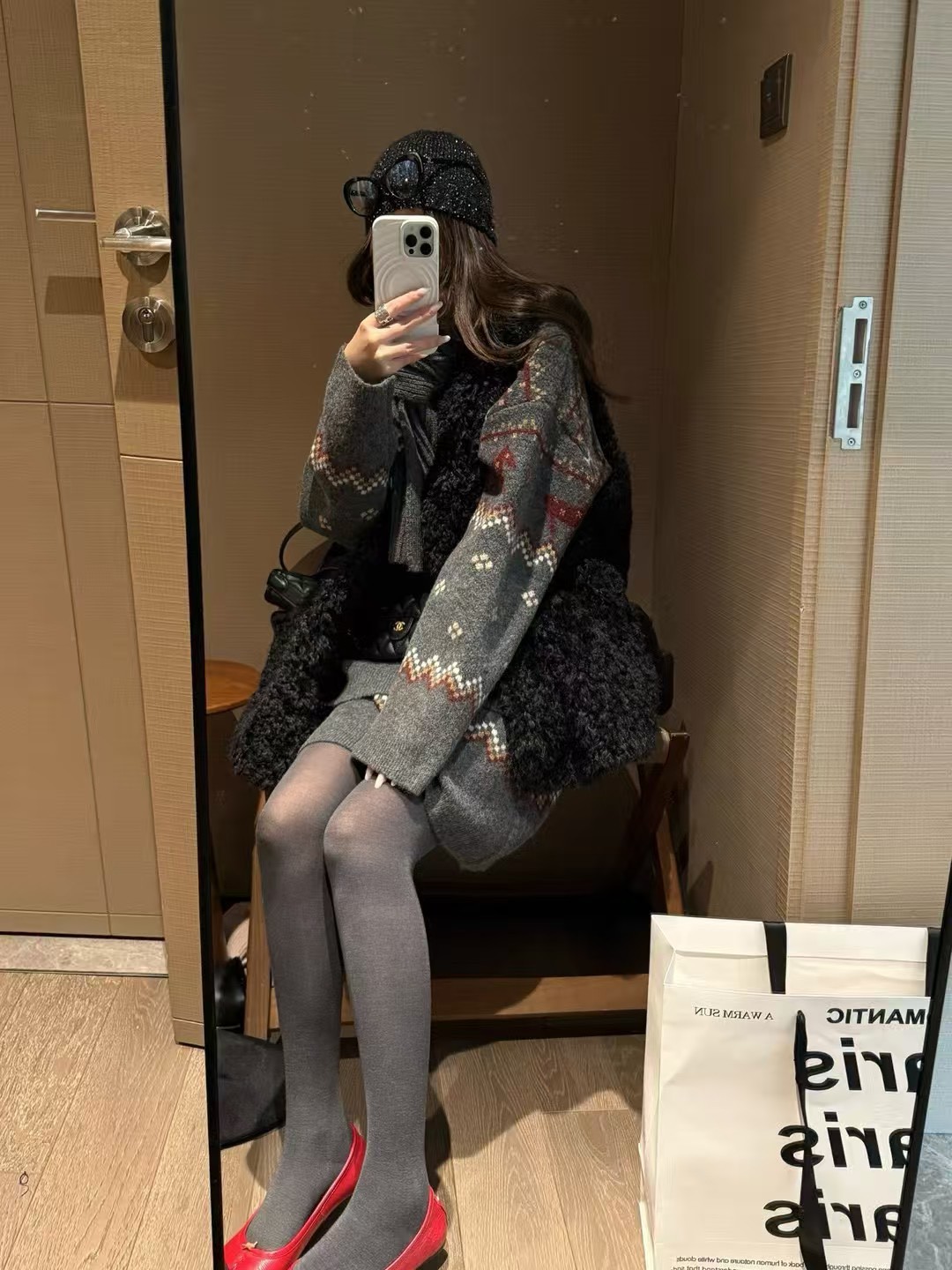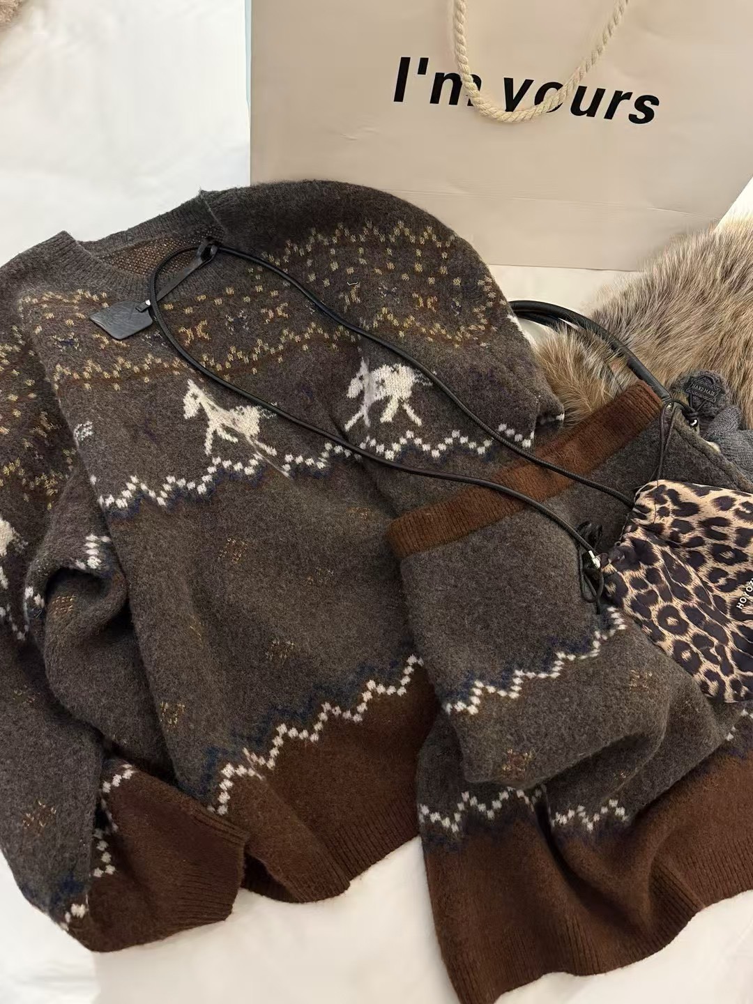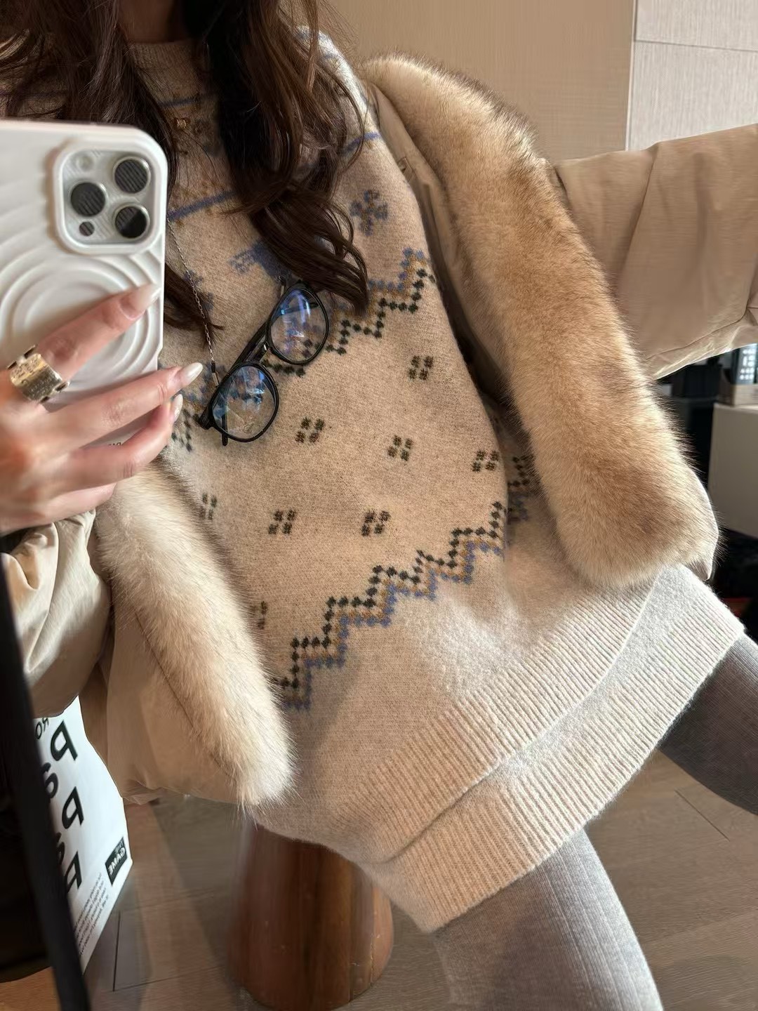 駱駝毛費爾島毛衣短裙套裝
